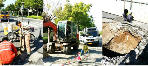 經(jīng)VGPR-20普查探測(cè)發(fā)現(xiàn)的空洞災(zāi)害點(diǎn)現(xiàn)場(chǎng)鉆孔和開挖處治。